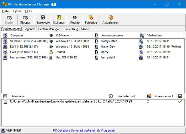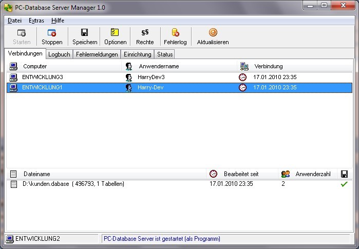 | PC-Database Server wird benötigt, damit mehrere Anwender im Netzwerk gleichzeitig eine Datenbankdatei bearbeiten können. | ||